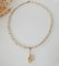 The heart is highlighted by an elegant suspension bar and the whole necklace is made with alternating Swarovski crystal spinners (in Crystal color softened with golden or silver shadow) with small Swarovski golden pearls too.